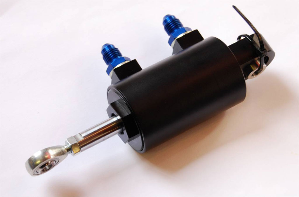 Throttle blipping for clutchless down-shifting is often one of the more challenging aspects of an installation. Every car is different, and we need to cater for all eventualities. In the ideal world we would use a small cylinder like this to operate the engine throttles directly. It provides a force of up to 180N from a weight of just 75g. |
