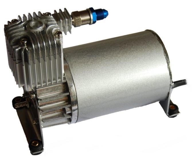 For circuit race & rally cars, a small on-board compressor is used to provide the power to make the shifts. This high specification unit is fully stripped, inspected and modified to provide very high levels of reliability. Operating at typically 20-25% duty cycle, the compressor current is just 13 amps, and therefore does not place any high transient demands on the vehicle electrical system. For hillclimb and sprint applications the compressor is replaced with a lightweight high-pressure (300bar) air bottle that can provide enough air for more than 500 shifts. |