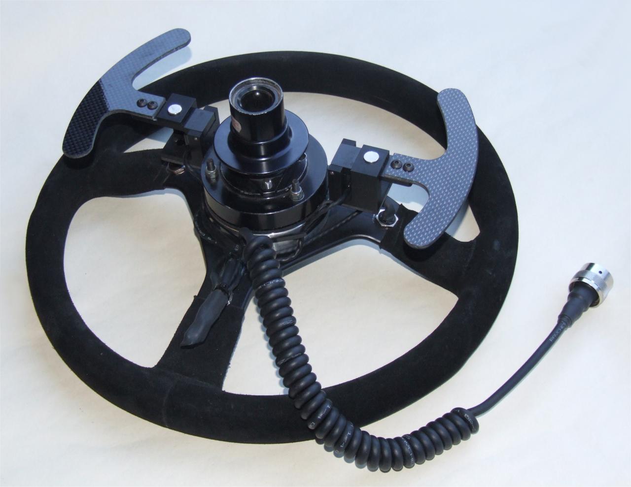 Shift paddles for rally cars require a different approach. Designed to be mounted to the steering column, the 'rally' paddle remains in the same position, regardless of steering wheel position.