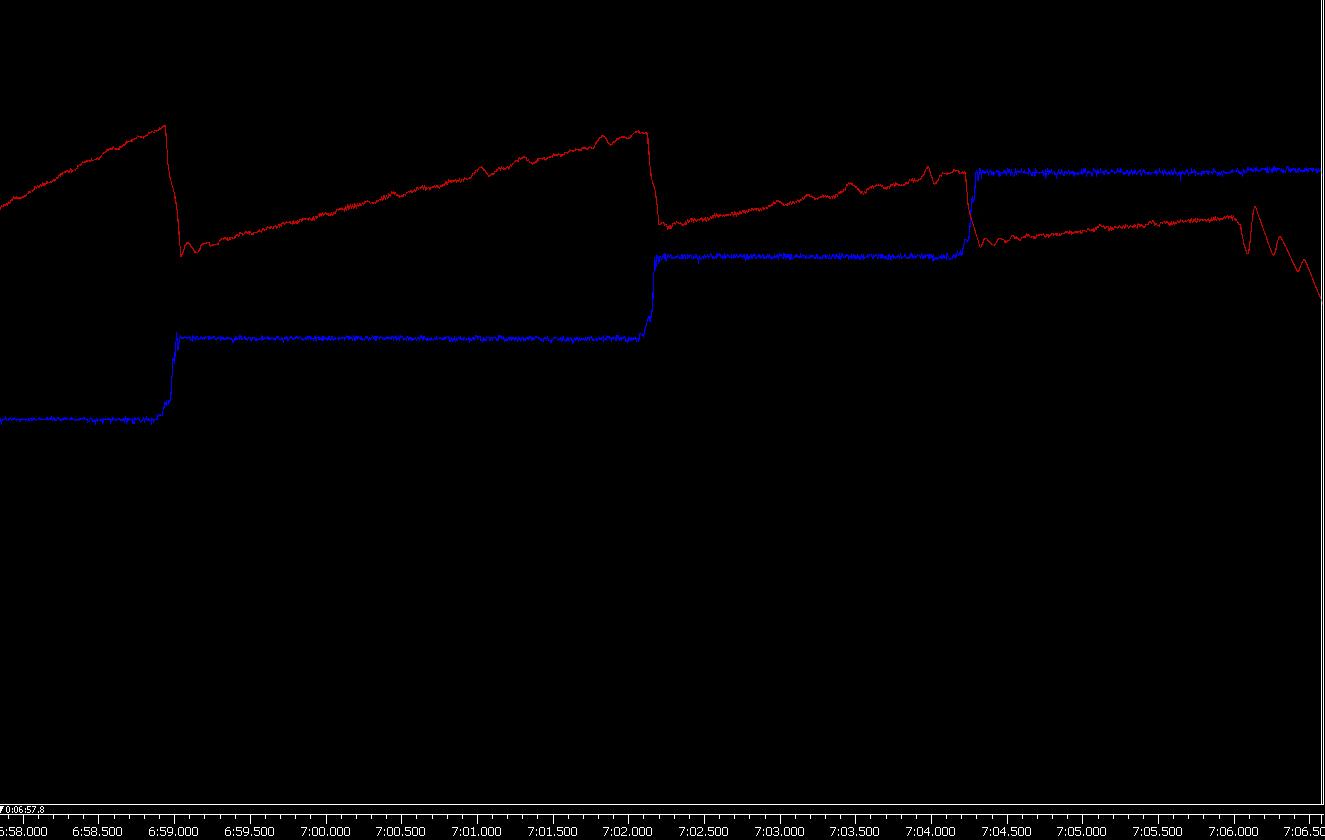 The ideal shift time is very closely linked to engine inertia. Too fast, and the engine will not have chance to slow down. Too slow, and the engine speed will fall to much. Both scenarios result in increased shock loadings and aggressive gear shifts. We have found that pneumatic operation, along with precisely controlled engine torque reduction results in the optimum shift time. This is borne out by our data log evidence. You can see from the sample log that when we make an up-shift, the engine speed falls at the correct rate to exactly match the next gear. If it didn't then you would see excessive 'ringing' and spikes on the RPM trace as the next gear engaged.